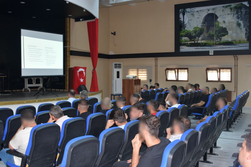 Ceza İnfaz Kurumumuzda yürütülen iyileştirme çalışmaları kapsamında hükümlü-tutukluların kişisel, sosyal, kültürel, mesleki, ahlâki ve sağlık yönünden gelişmelerini sağlamak amacıyla; kurumumuz konferans salonunda Psiko – Sosyal Servis koordinesinde Tarsus İlçe Sağlık Müdürlüğü tarafından konferans verildi. Konferansta Tarsus İlçe Sağlık Müdürlüğü’nde görevli Doktor Metin UZABACI, Sosyal Çalışmacı Mehmet İŞLEK, Fizyoterapist Burak YILDIRIM, Sosyal Çalışmacı Gamze EREN tarafından Bulaşıcı Hastalıklar, Bağımlılıkla Mücadele ve Kadına Yönelik Şiddetle Mücadele konularında bilgiler paylaşıldı. Konferansa; kurum müdürlerimiz, kurum personellerimiz ve hükümlü-tutuklular katılım gösterdi.