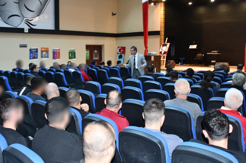 Ceza İnfaz Kurumumuzda yürütülen iyileştirme çalışmaları kapsamında hükümlü-tutukluların kişisel, sosyal, kültürel, mesleki, ahlâki ve sağlık yönünden gelişmelerini sağlamak amacıyla; kurumumuz konferans salonunda Psiko – Sosyal Yardım Servisi & Eğitim ve Öğretim Servisi koordinesinde Mersin Üniversitesi, İletişim Fakültesi Öğretim Üyesi Prof. Dr. Barış BULUNMAZ tarafından farklılıklara saygı ve birlikte yaşama kültürü konulu seminer verilmiştir. Seminere; kurum müdürlerimiz, kurum personellerimiz ve hükümlü-tutuklular katılım göstermiştir.